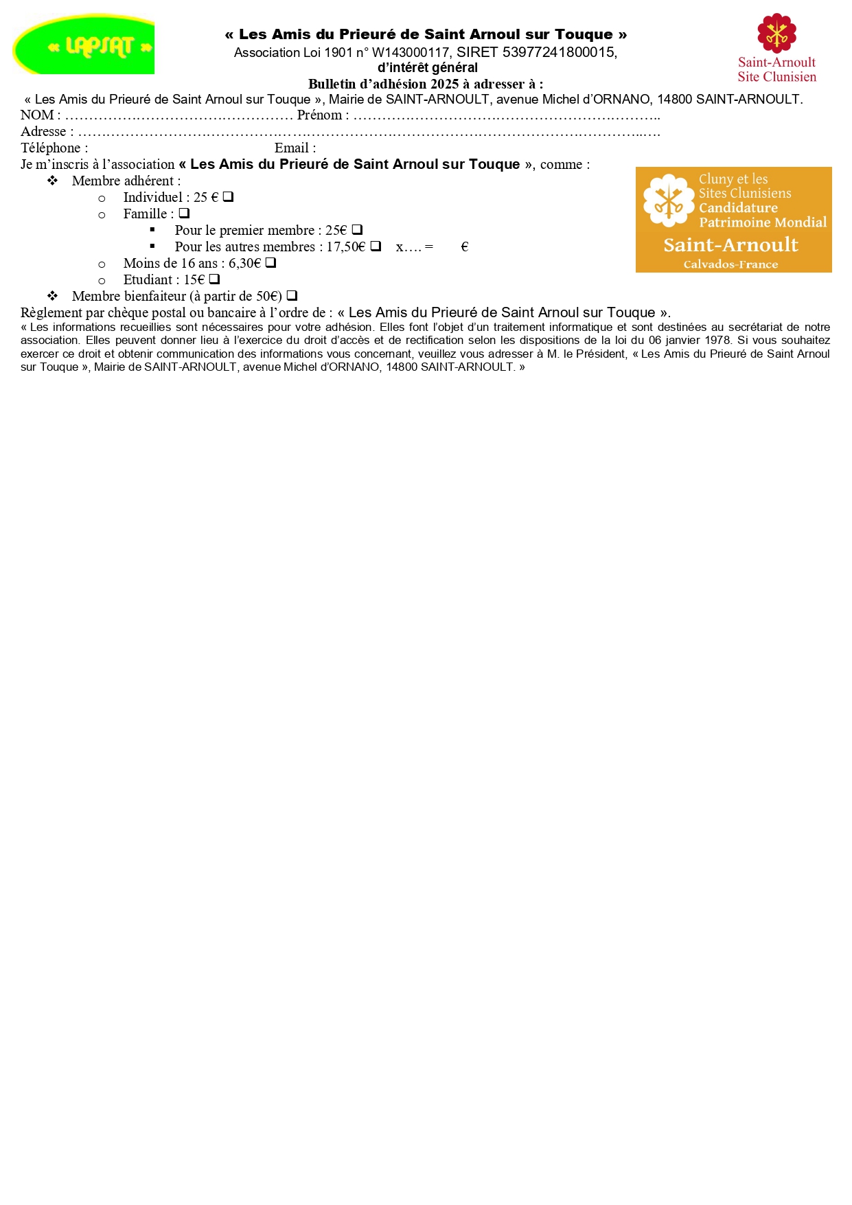 Bulletin d’adhésion et de soutien Veuillez trouver ci-après un formulaire d’adhésion et de soutien pour l’année 2025 ! N’hésitez pas à cliquer sur l’image ci-dessous pour accéder au fichier complet.