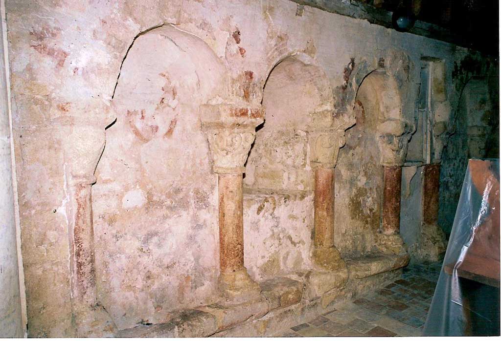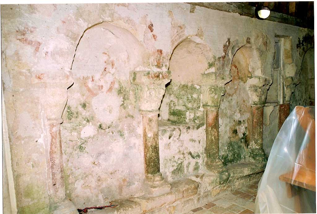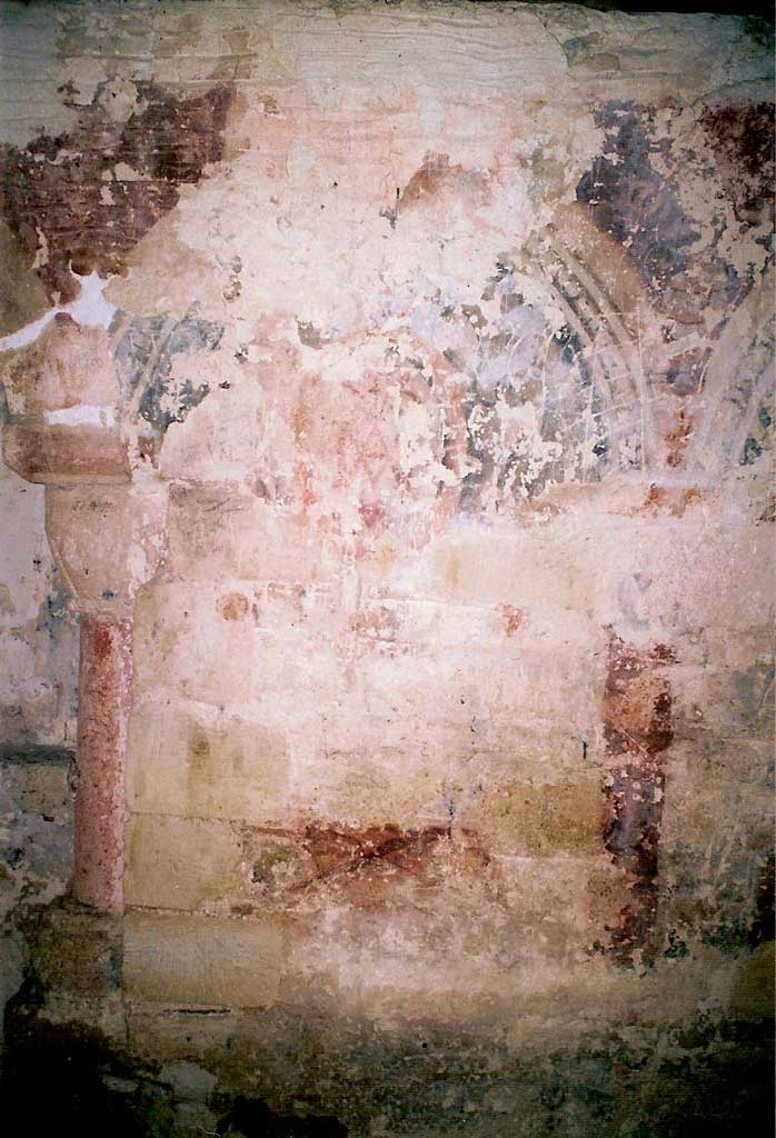 Peintures murales de la chapelle: mur nord avant entretien en 2005 (L. Blondaux).