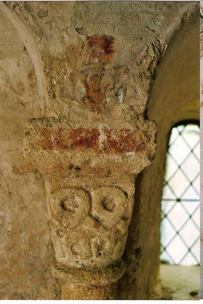 Peintures murales de la chapelle: détail chapiteau après entretien 2005 (L. Blondaux).