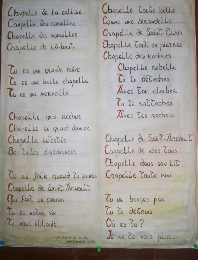 Poème collectif écrit, au XXIème siècle, par des élèves de CM1/CM2 de l'école de Saint-Arnoult.