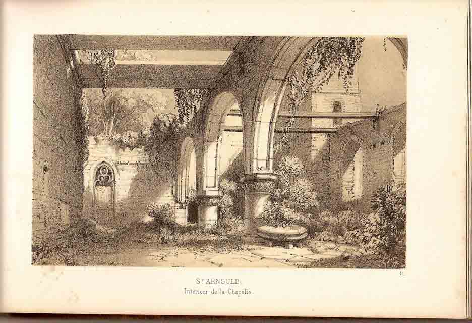 Ruines intérieures de l'église, dessin de Charles Mozin 1850.